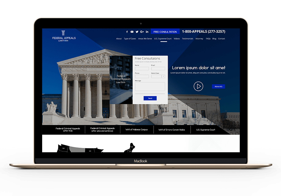 Federal Appeal Law Firm is a boutique law firm that handles Federal Criminal Appeals in the Circuit Courts of Appeals in the United States and United States Supreme Court. They find and research legal issues relating to Federal Criminal Appeals regardless of if clients were convicted after trials or plea agreements. This complex legal specialty encompasses many different levels and grades of court rules and regulations, and the Federal Appeal Law Firm team required a website that would above all highlight their professionalism and experience in the field.